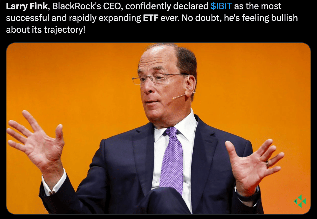 Their CEO, Larry Fink, was on CNBC last week and openly stated that their Bitcoin ETF is “the fastest growing ETF in all of ETF history”
